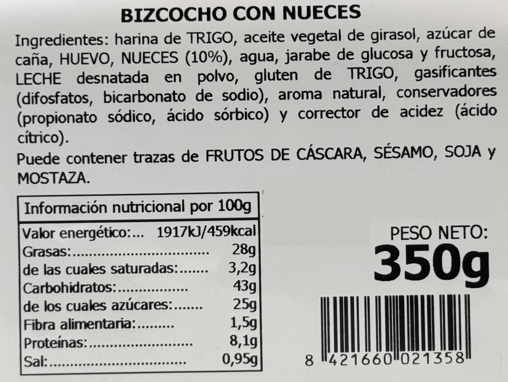 Elaborado con nueces naturales, aceite de girasol alto oleico y huevos frescos, este bizcocho ha sido creado para cautivar tu paladar y enamorarte con cada bocado.