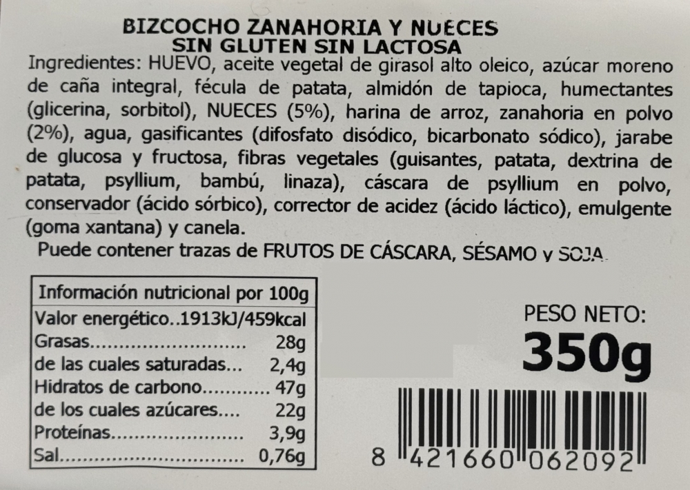 ¿Tienes alguna duda del producto Bizcocho Tradicional Carrot Cake SIN GLUTEN LA GRANJA?