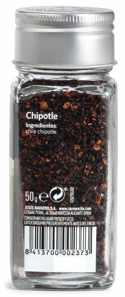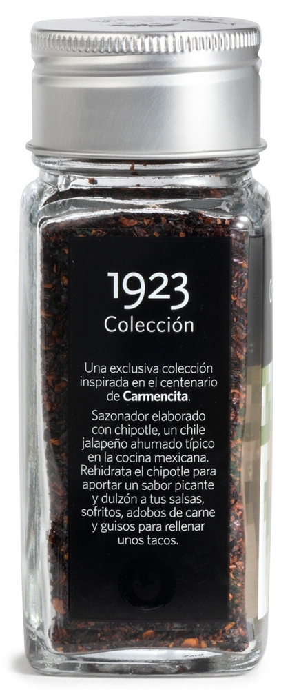 Sazonador elaborado con chipotle, un chile jalapeño ahumado típico en la cocina mexicana. Rehidrata el chipotle para aportar un sabor picante y dulzón a tus salsas, sofritos, adobos de carne y guisos para rellenar unos tacos.