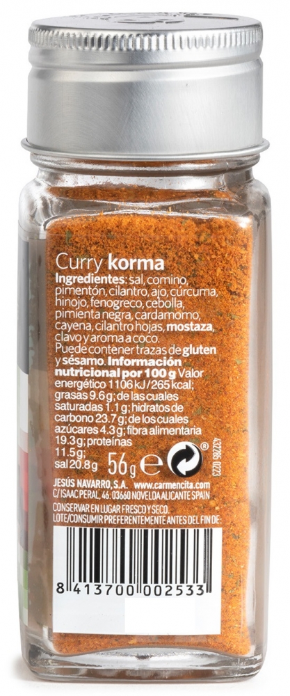 ¿Tienes alguna duda del producto Curry Korma CARMENCITA 1923?