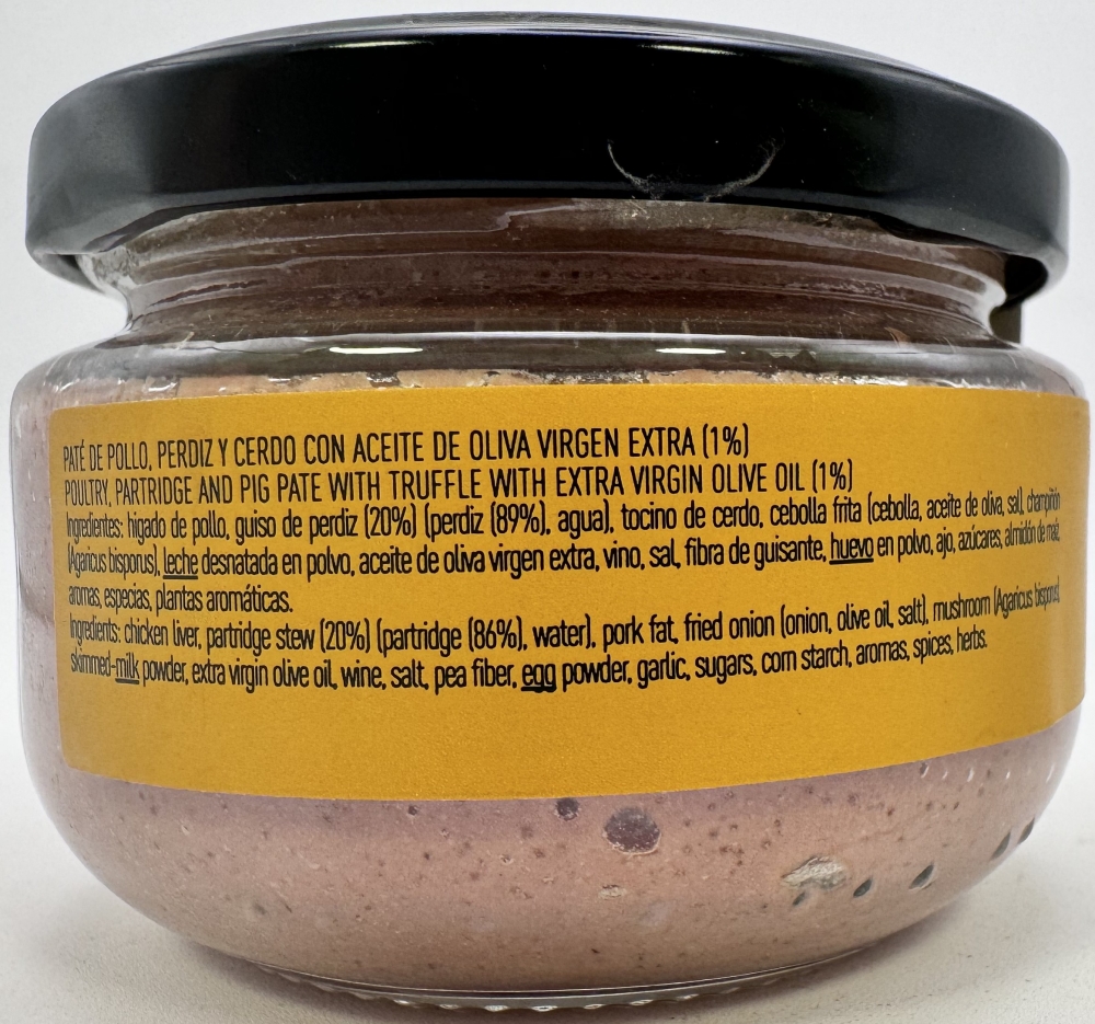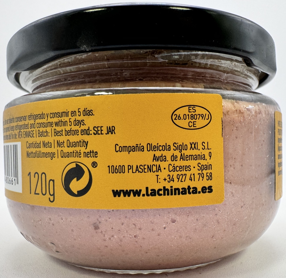 El Paté de Perdiz con Aceite de Oliva Virgen Extra La Chinata está elaborado con piezas de Perdiz de excelente calidad, un ave de caza exquisita utilizada por prestigiosos cocineros gracias a su textura, sabor y versatilidad en la cocina. Además, está elaborado con AOVE, que lo hace exquisito y genera un resultado delicioso en boca. Este paté es recomendable para un picoteo untado en pan, ya que tiene una textura muy suave y sabrosa. Se puede tomar solo o se le puede dar un toque con mermeladas vegetales, como por ejemplo mermelada de Cebolla, de Pimiento o de Calabaza, así como acompañarlo con Crema Balsámica Aromatizada con Cereza, Aromatizada con Trufa o con Higo. También puede ser un buen acompañamiento o aderezo para ofrecer un sabor distintivo a elaboraciones de guisos, carnes asadas, o incluso para arroces. Ingredientes Hígado de pollo, guiso de perdiz (22%) (perdiz (86%), agua, especias, vino, ajo), tocino de cerdo, cebolla, champiñón, aceite de oliva virgen extra (2%), sal, vino blanco Montilla-Moriles, caseinato, leche desnatada en polvo, huevo en polvo, fibra de guisante, azúcar, ajo, almidón de maíz, especias.
