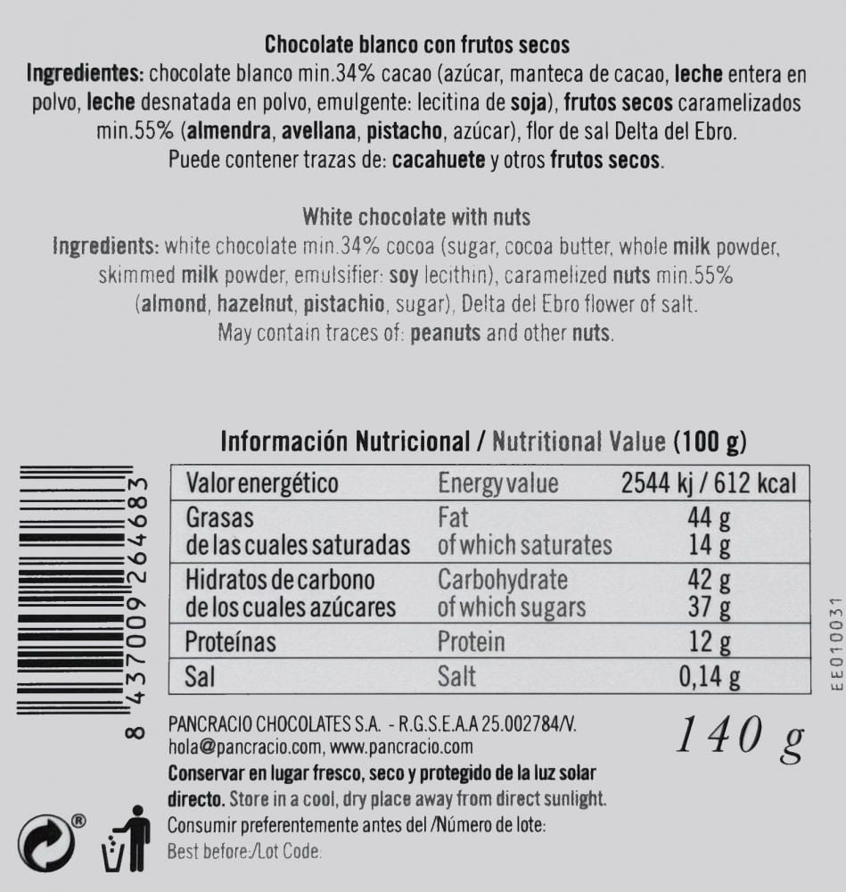 ¿Tienes alguna duda del producto Rocas de Chocolate Blanco, Almendras, Avellanas y Pistachos PANCRACIO?